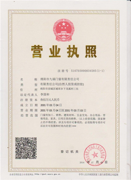 綿陽市九福門窗有限責任公司座落于中國西部美麗的科技城----綿陽。是川內(nèi)研發(fā)生產(chǎn)新型換代,生態(tài)環(huán)保室內(nèi)門和家具的企業(yè)之一。我公司生產(chǎn)的產(chǎn)品,綠色環(huán)保、堅固耐磨,抗擊性高、防潮阻燃、不含苯、不變形,連續(xù)六年經(jīng)四川省綿陽市質(zhì)量技術監(jiān)督局抽檢合格,符合中華人民共和國行業(yè)標準的各項要求。2011年,被中國產(chǎn)品培育委員會和中國品牌調(diào)查統(tǒng)計中心推介為《質(zhì)量·服務·信譽AAA企業(yè)》、《中國綠色環(huán)保產(chǎn)品》和《誠信經(jīng)營、消費者滿意產(chǎn)品》;注冊商標“金九福”牌系列產(chǎn)品,在全國品牌評選推廣活動中,經(jīng)中國品牌認證委員會和中國產(chǎn)品質(zhì)量評選中心審核,于2012年2月入選為《中國****品牌》…>>更多 |